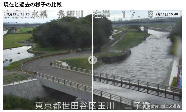 視覚的に現在の川の様子を確認することで、実際にどれほど危険なのかを把握できます。
